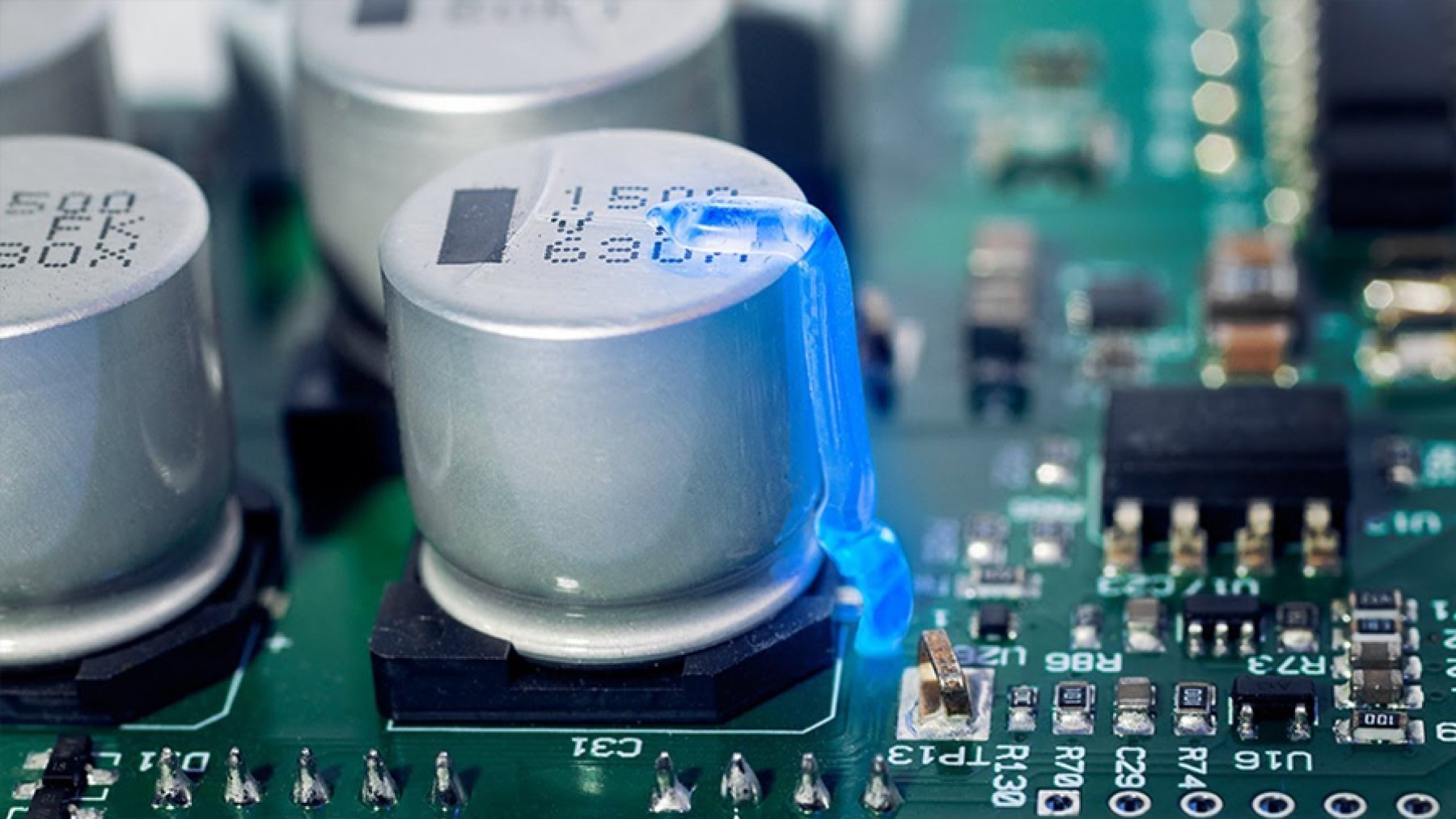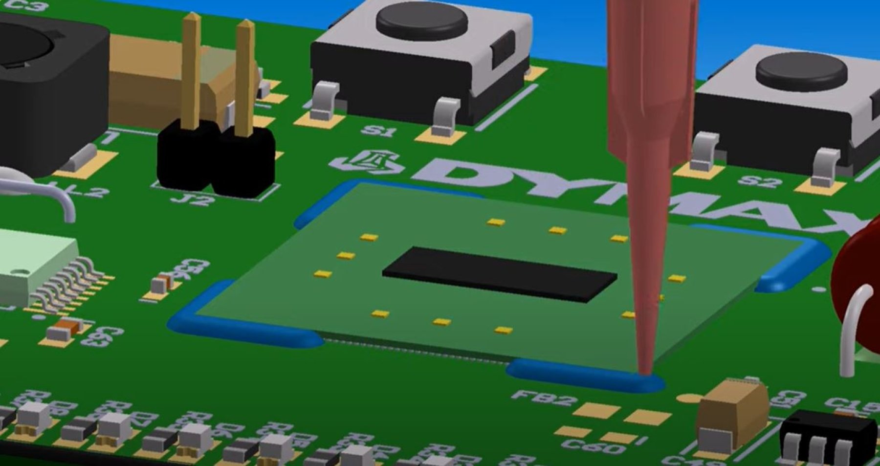 Dymax staking materials contain no nonreactive solvents and cure upon exposure to light. The ability of Dymax materials to cure in seconds enables faster processing, greater output, and lower processing costs. When cured with Dymax light-curing spot lamps, focused-beam lamps, flood lamps, or conveyor systems, they deliver optimum speed and performance for printed circuit boards. Dymax lamps offer the ideal balance of UV and visible light for the fastest, deepest cures.